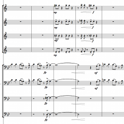 In composing MOVE! I wanted to combine the rhythmic excitement and improvisational elements of jazz music with the refined developmental techniques found in classical music. One of the difficulties with jazz influenced concert music is that others will attempt to find an appropriate label to identify its genre. “Jazz” and “classical” are both terms that are not quite adequate. Rather than try to justify one or both labels, I prefer to follow Charles Mingus’s example and label it simply “Morneau Music.”