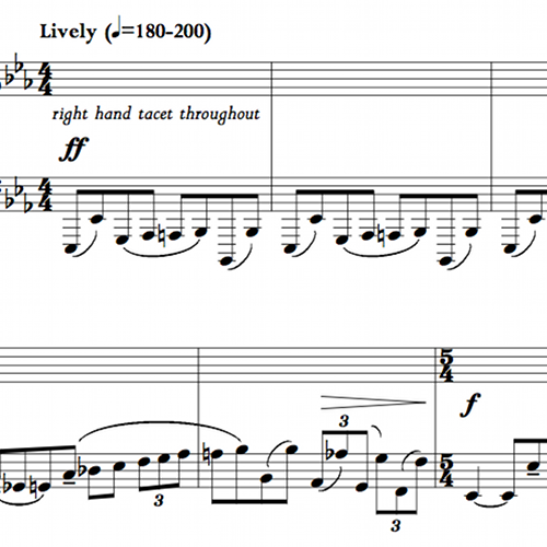 For one hand only, this movement is composed from standard, left handed boogie-woogie patterns.
